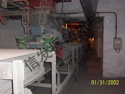 ??對于振動給料機難于輸送的物料(如滑石粉、鈦白粉、白泥、面粉、粘土等),以及含水量較大的親水性物料,則應根據試驗確定產量。必要時將槽體適當傾斜安裝(一般向下傾斜10~15度),以增加給料量。