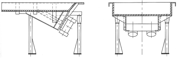 該系列給料機(jī)的給料過程是利用特制的振動(dòng)電機(jī)或兩臺(tái)電動(dòng)機(jī)帶動(dòng)激振器驅(qū)動(dòng)給料槽沿傾斜方向作周期直線往復(fù)振動(dòng)來實(shí)現(xiàn),當(dāng)給料槽振動(dòng)的加速度垂直分量大于重力加速度時(shí),槽中的料被拋起,并按照拋物線的軌跡向前跳躍運(yùn)動(dòng),拋起和下落在瞬間完成,由于激振源的連續(xù)激振,給料槽連續(xù)振動(dòng),槽中的煤連續(xù)向前跳躍,以達(dá)到給料的目的。